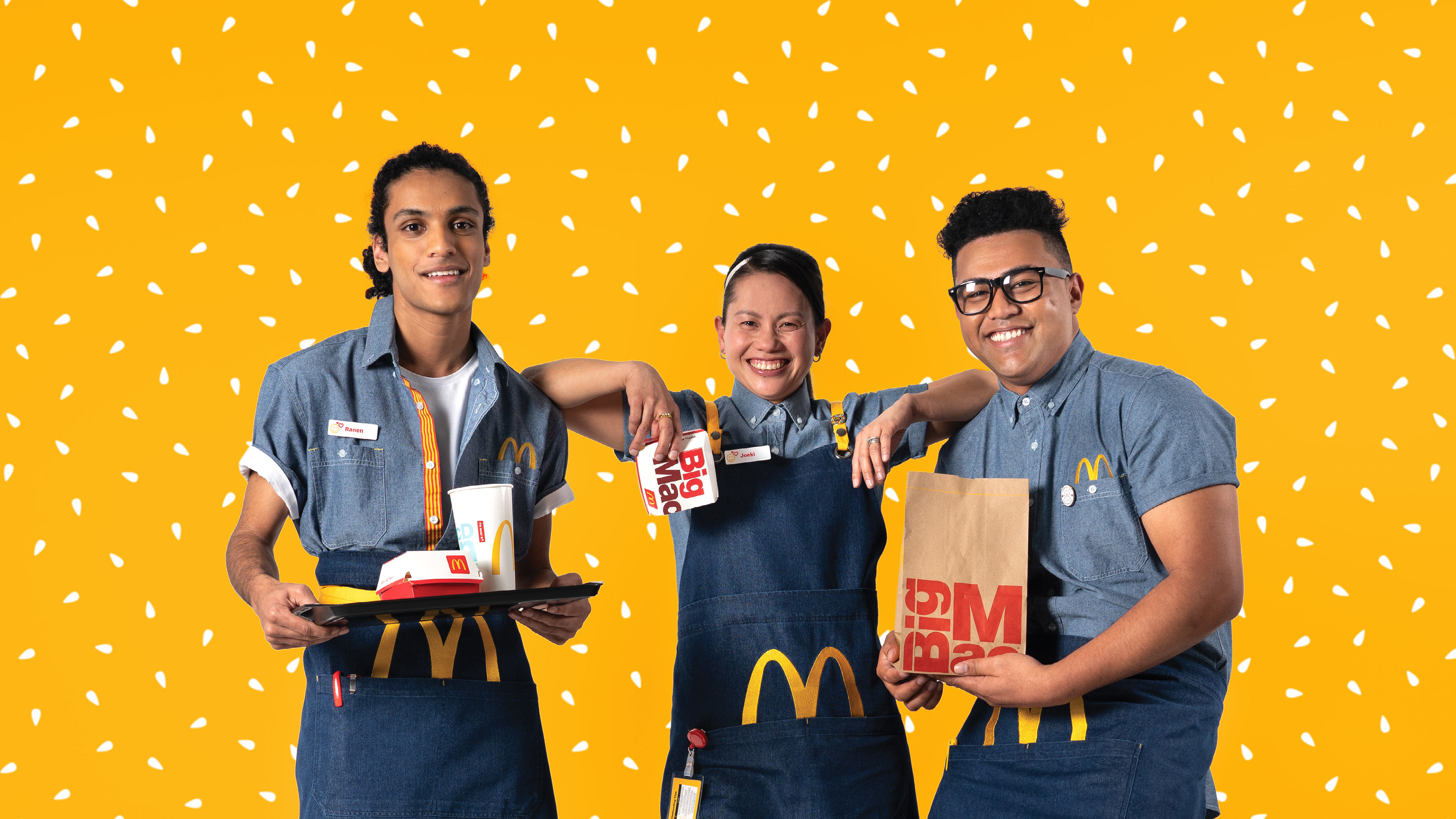 Whilst working as the Graphic Designer for Deane Apparel (who specialise in workwear uniforms), I had the opportunity to be the photographer for a stylised shoot for the popular fast food giant, McDonald's (Australia). We had recently won the tender to design their new uniforms and were looking to showcase them in a uniform guide for their current and upcoming employees. I worked closely with the New Zealand McDonald's Head of Marketing and garment designers at Deane to co-ordinate a photoshoot that would capture the energetic, playful, and team-focused work culture at McDonald's. After shooting and editing the photos, I then compiled them into a uniform guide that was printed into a booklet and uploaded online on the McDonald's intranet.